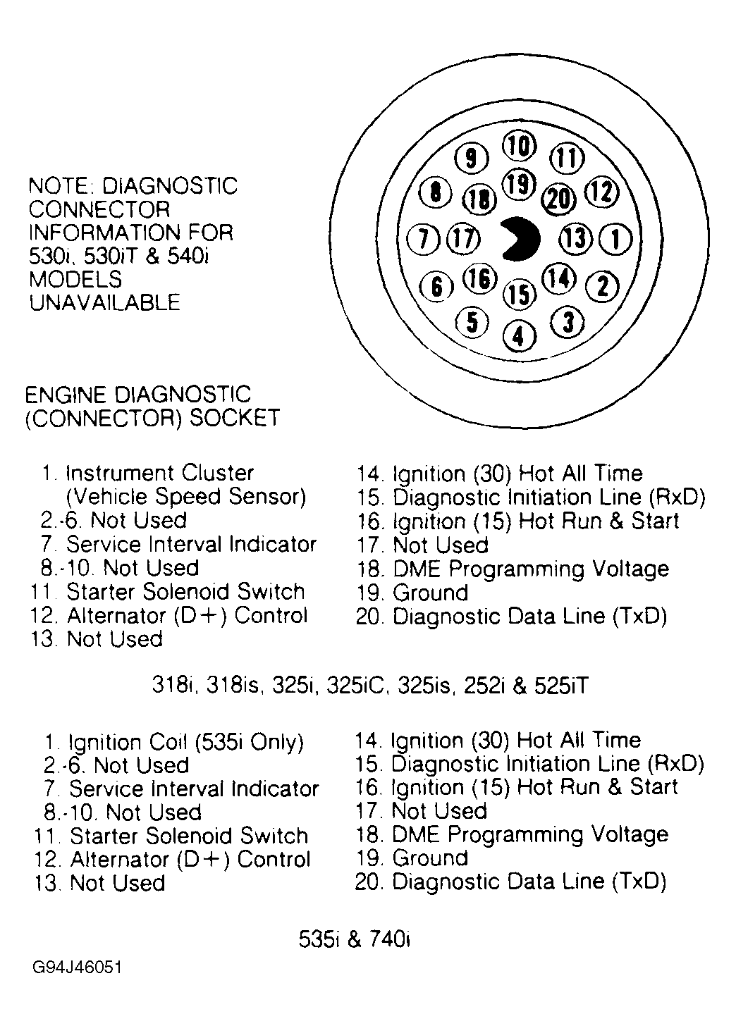 Data exchange between control unit and BMW diagnostic software occurs via Diagnostic Initiation Line (RxD) and Diagnostic Data Line (TxD) in engine diagnostic (connector) socket. SeeFig 1 .