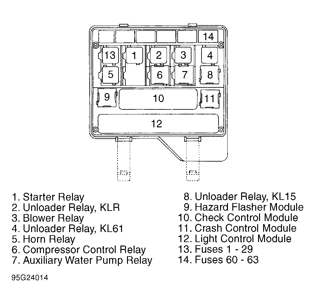 Headlight/Foglight Cleaning System Module On left side of engine compartment, in auxiliary fuse/relay box. See Figure .