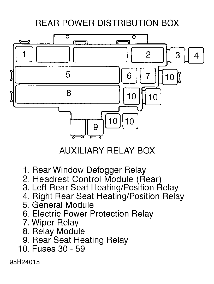 Headrest Control Module (Rear) In rear power distribution box. See Figure .