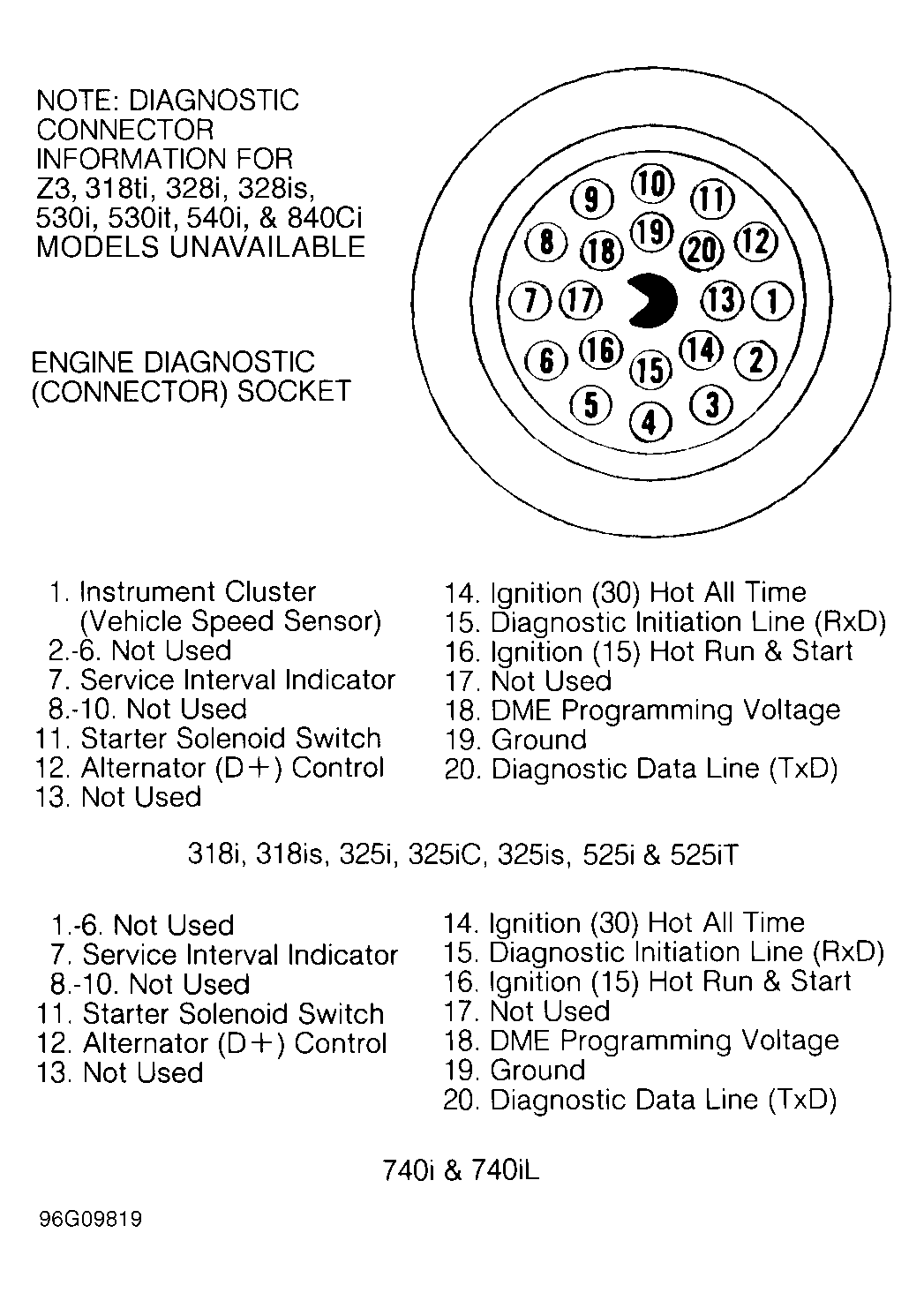 Data exchange between control unit and BMW diagnostic software occurs via Diagnostic Initiation Line (RxD) and Diagnostic Data Line (TxD) in engine diagnostic (connector) socket. See Fig 1.