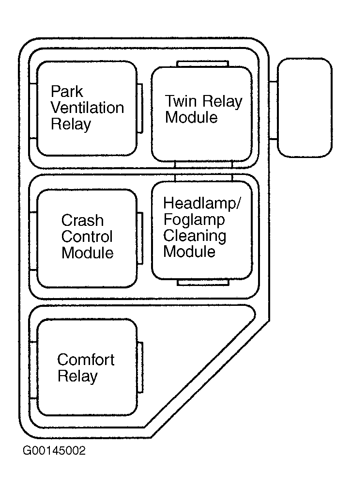 Crash Control Module On relay panel, under left side of dash. See Figure .