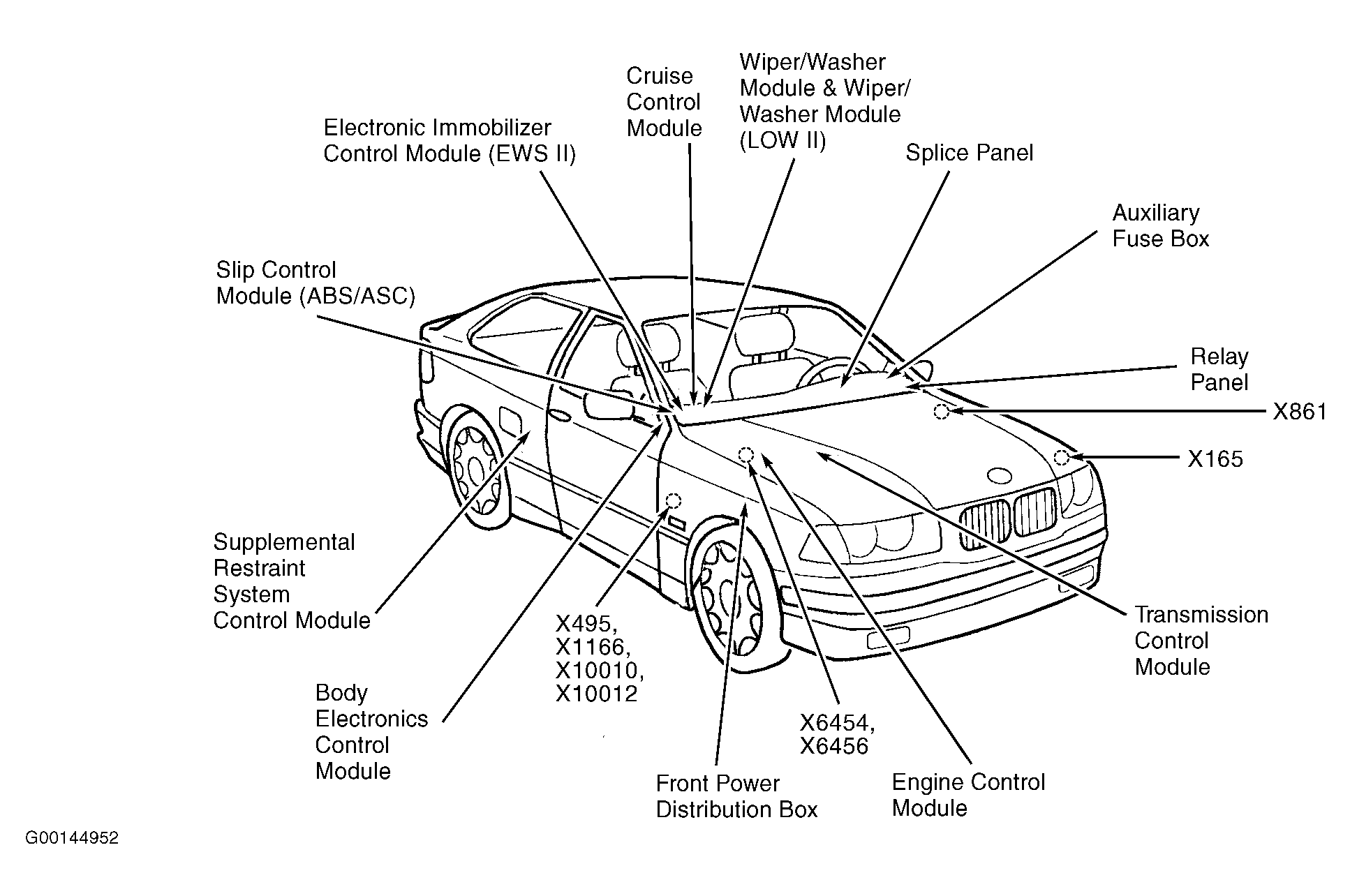 | Electronic Immobilizer Control Module (EWS II) | Under right side of dash, behind glove compartment. See Figure . |