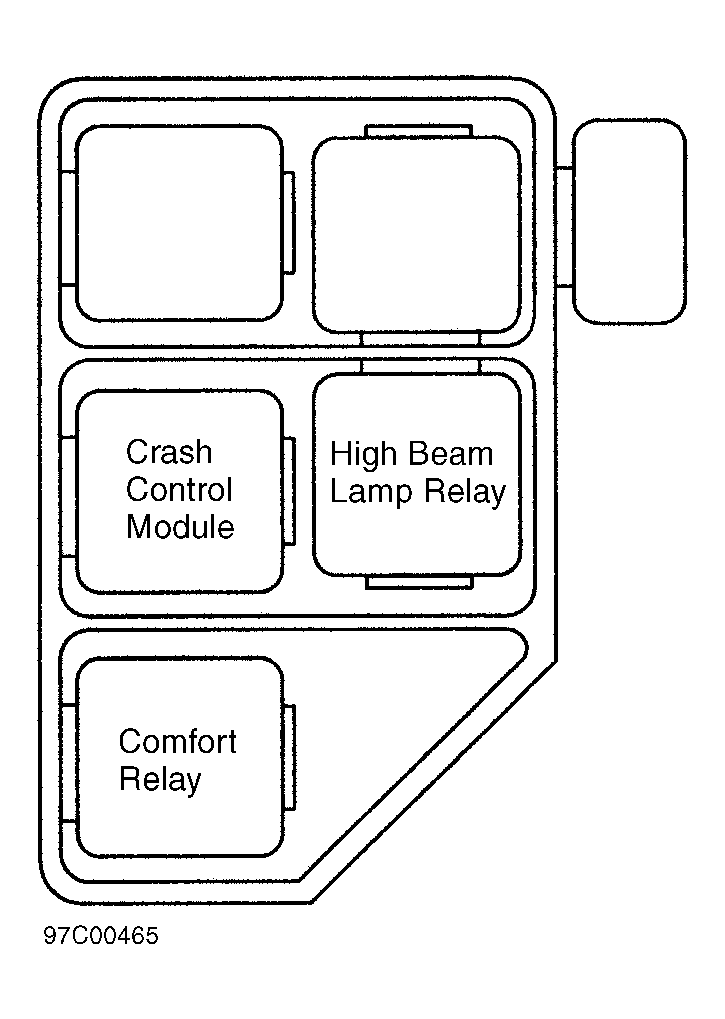 | Crash Control Module | On relay panel, under left side of dash. See Figure . |