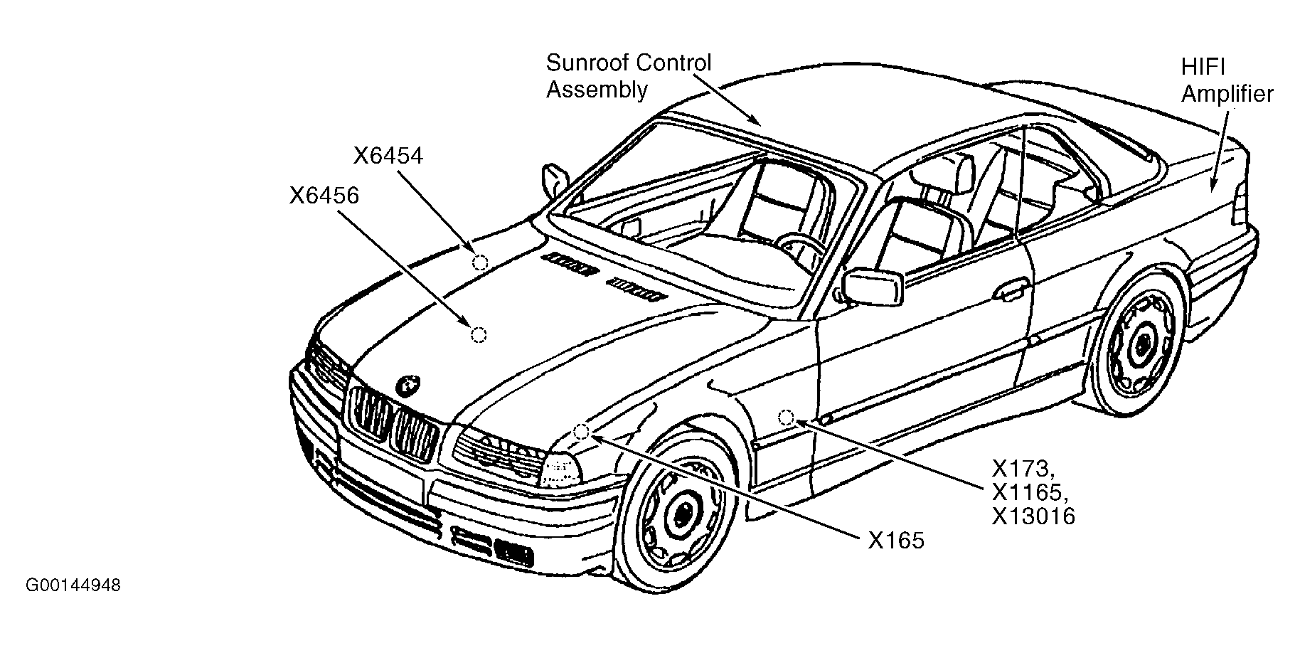 | Sunroof Control Assembly | Under roof center panel. See Figure . |