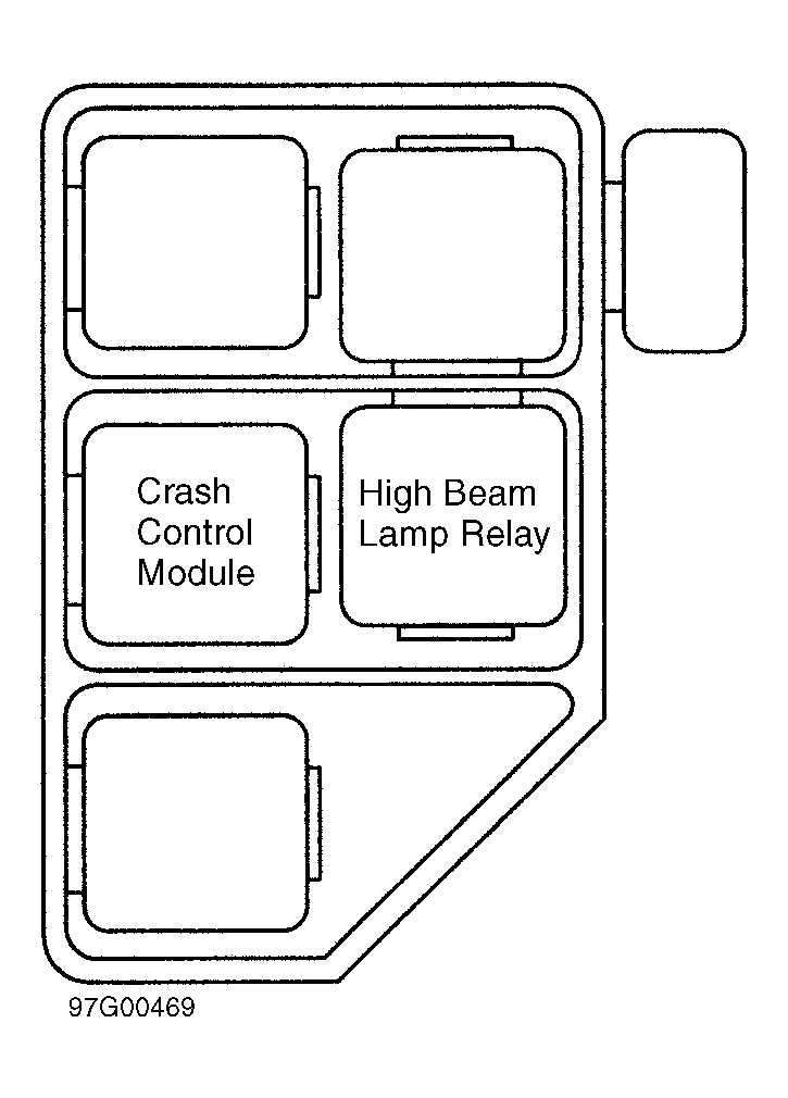 | Crash Control Module | On relay panel, under left side of dash. See Figure . |