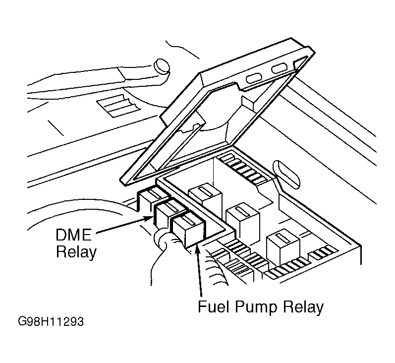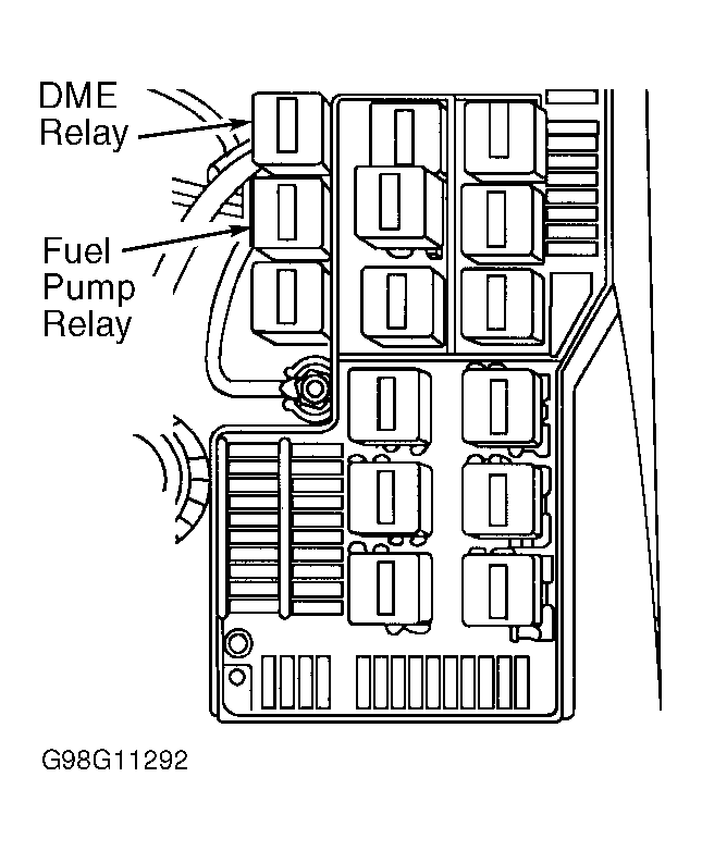 DME & Fuel Pump Relays Left Rear Corner Of Engine Compartment, In Relay Box