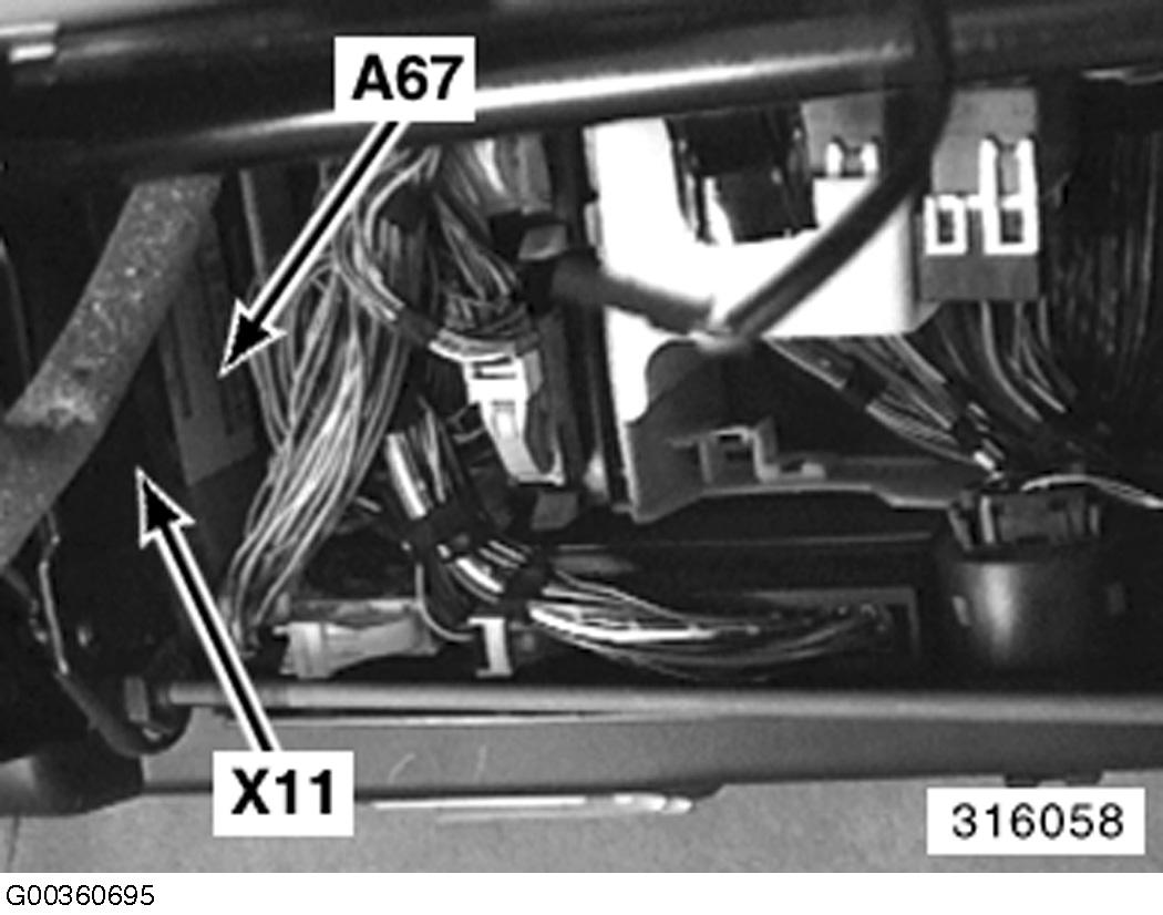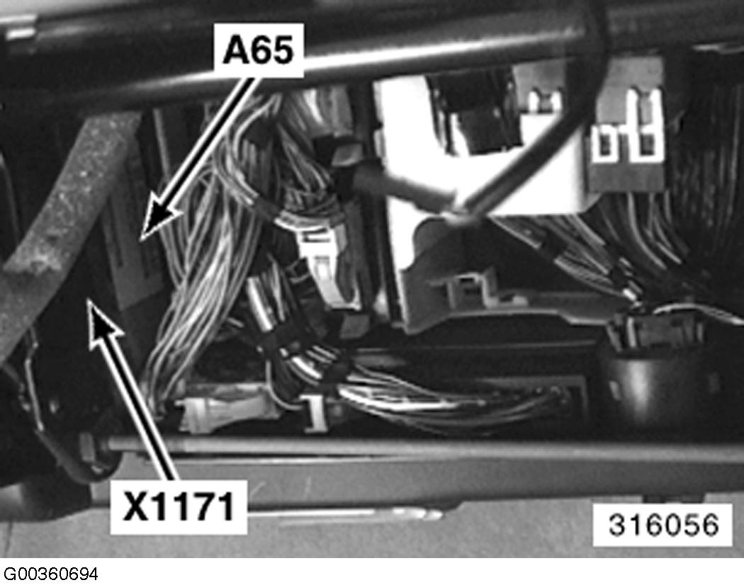 | ABS/DSC Control Module (A65) | Behind glove box. See Figure. |