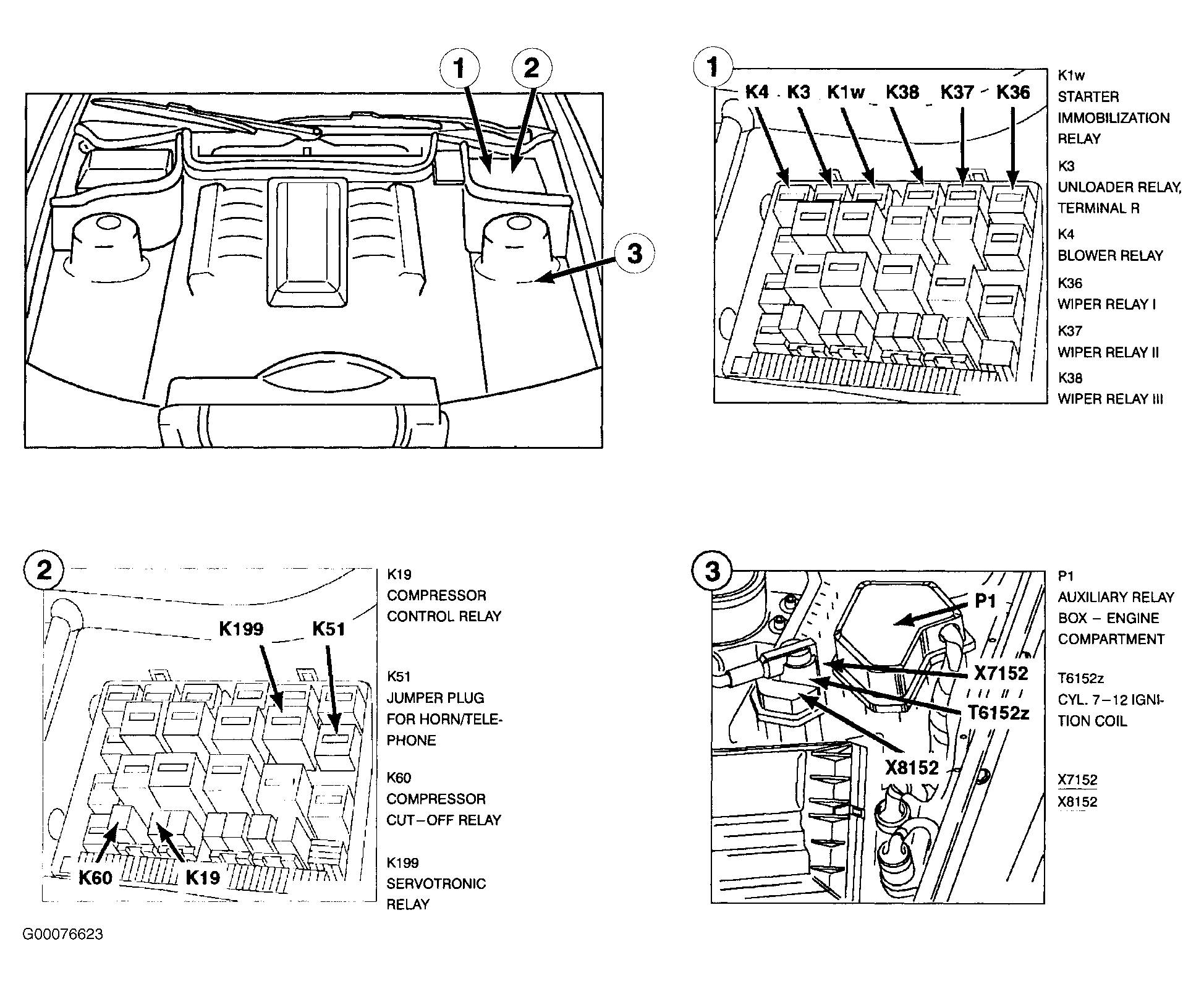 | Auxiliary Relay Box - Engine Compartment (P1) | LH side of engine compartment. See Figure . |