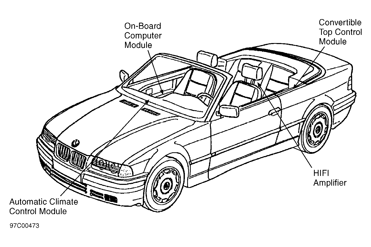 Convertible Top Control Module On lower left "C" pillar behind side panel. See Figure .