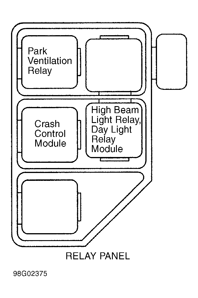 Day Light Relay Module On relay panel, under left side of dash. See Figure .