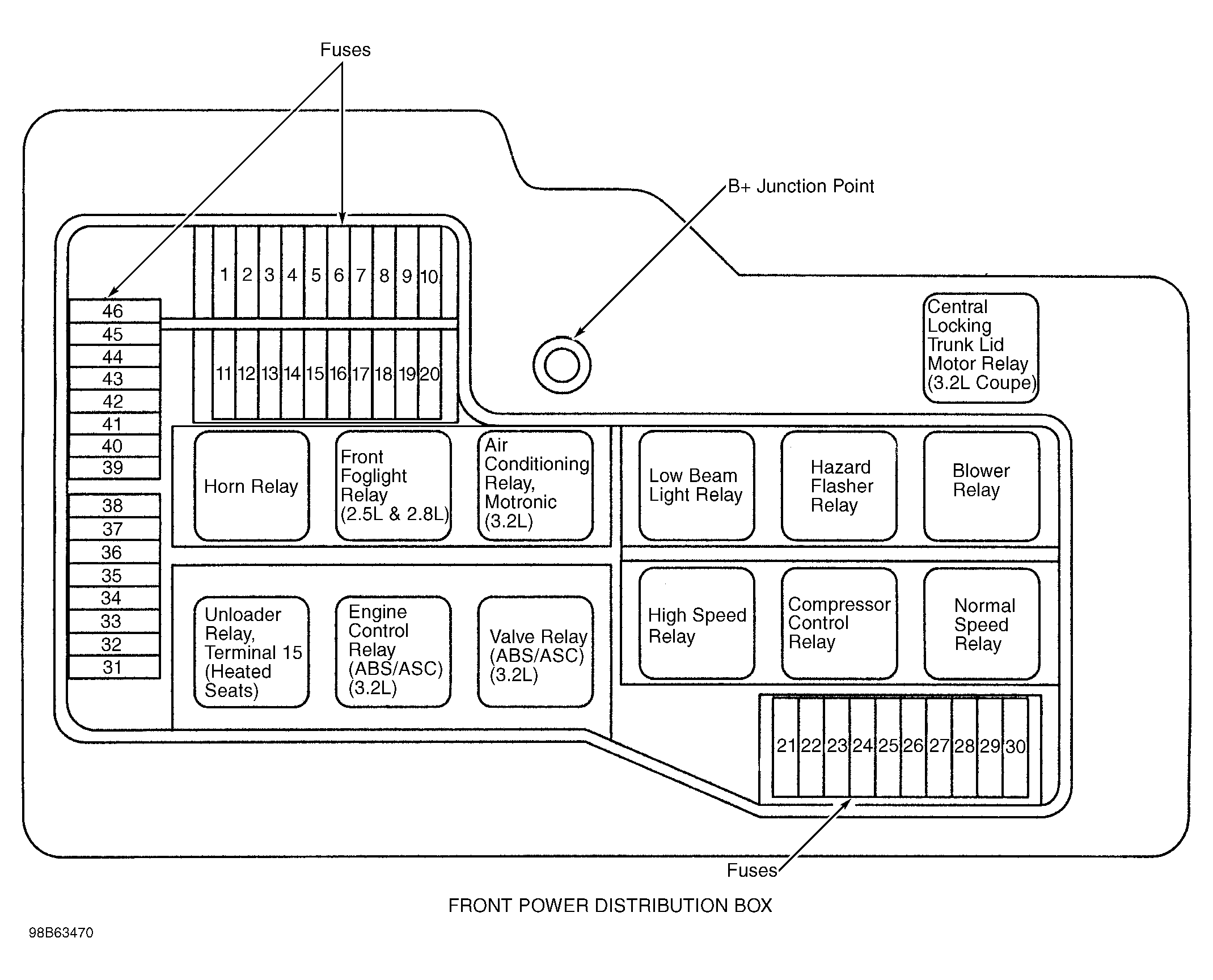 | E-Box (3.2L) | On right rear of engine compartment. |
