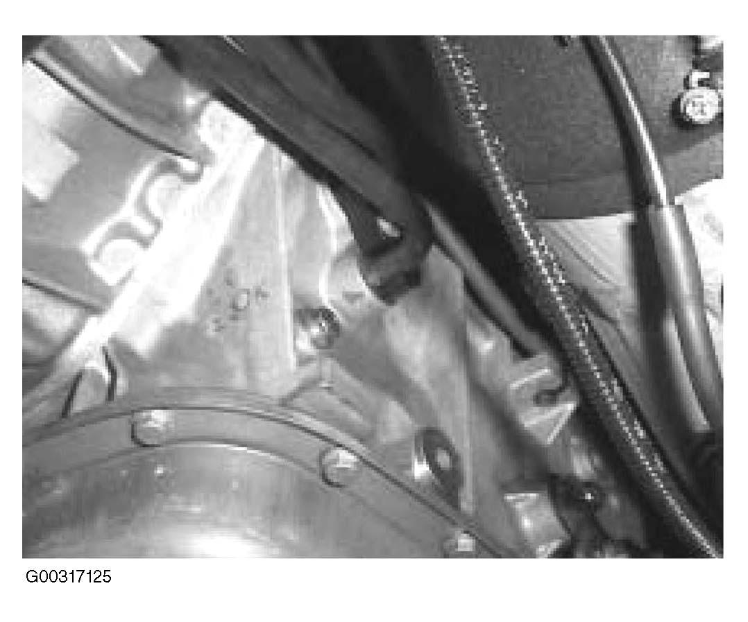 A transmission fluid heat exchanger is located on the bottom edge of the radiator. Transmission fluid inlet and outlet hose fittings are located on the driver's side of the transmission. The heat exchanger provides two functions: