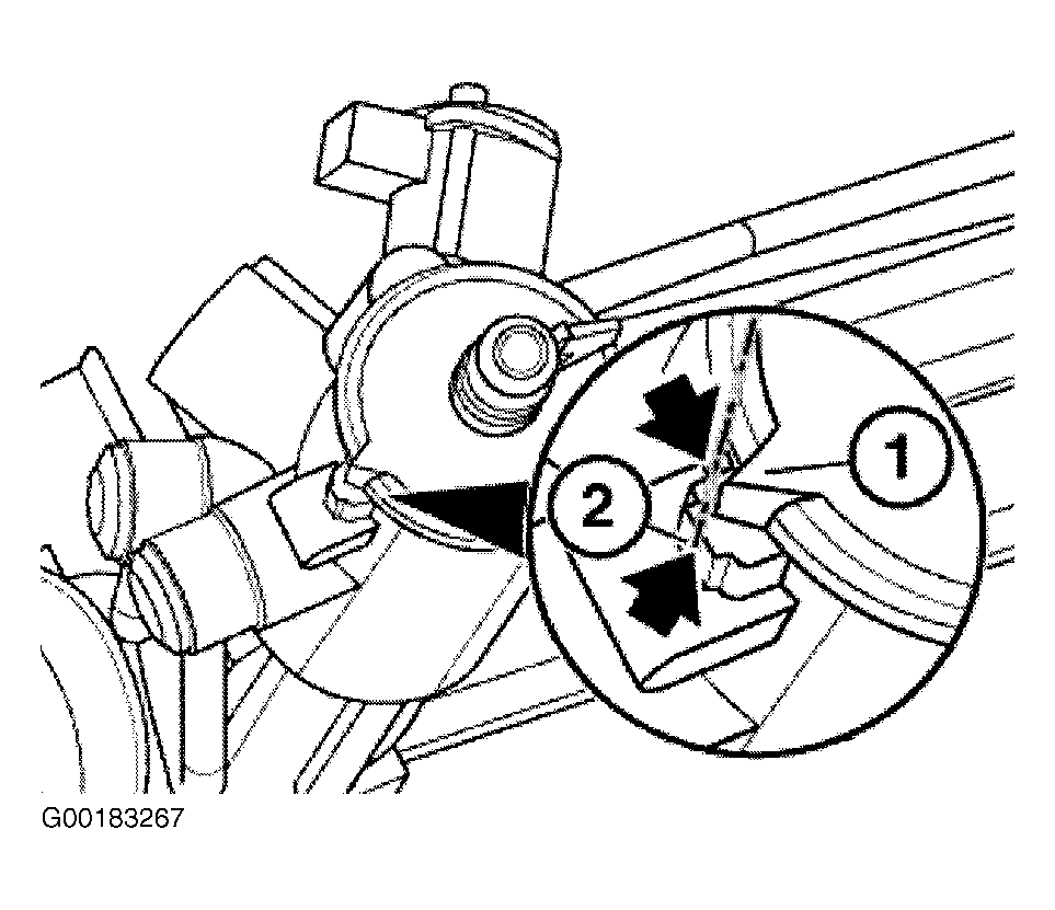 2. Loosen lock nut (1) on tie rod. Adjust wheel toe-in by turning tie rod at hexagon head (2). See Figure. Adjust to specification. See E53  under WHEEL ALIGNMENT SPECIFICATIONS.