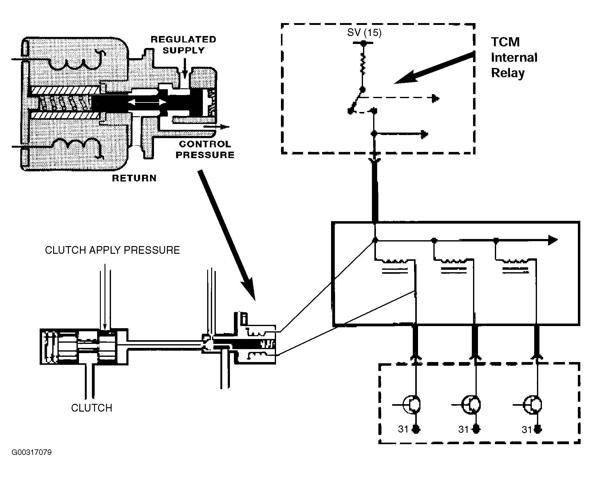 The magnetic valves are controlled by the TCM. They are supplied power by an internal TCM relay and are ground controlled. The TCM switches one or more of the MV's on or off in various combinations to achieve various shifts. Most transmission have 2 or 3 MV's to control shifting.