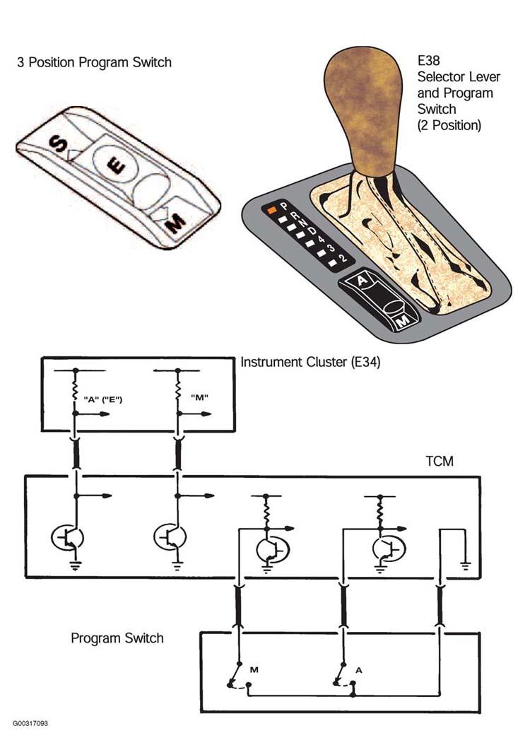 Regardless of vehicle application, the program switch provides a momentary ground to the TCM to switch between modes. There have been numerous designs of the program switch since it's introduction. The program switch configurations are as follows: