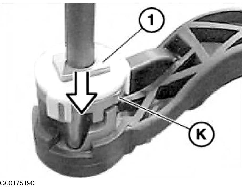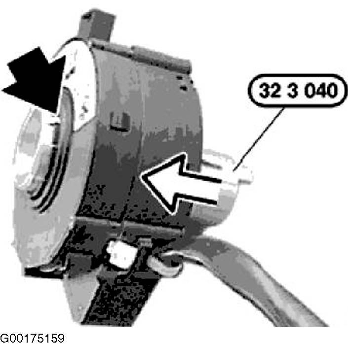 3. Slide special tool (32 3 040) into steering angle sensor. The link must reset in an opening in the steering angle sensor. See Figure.