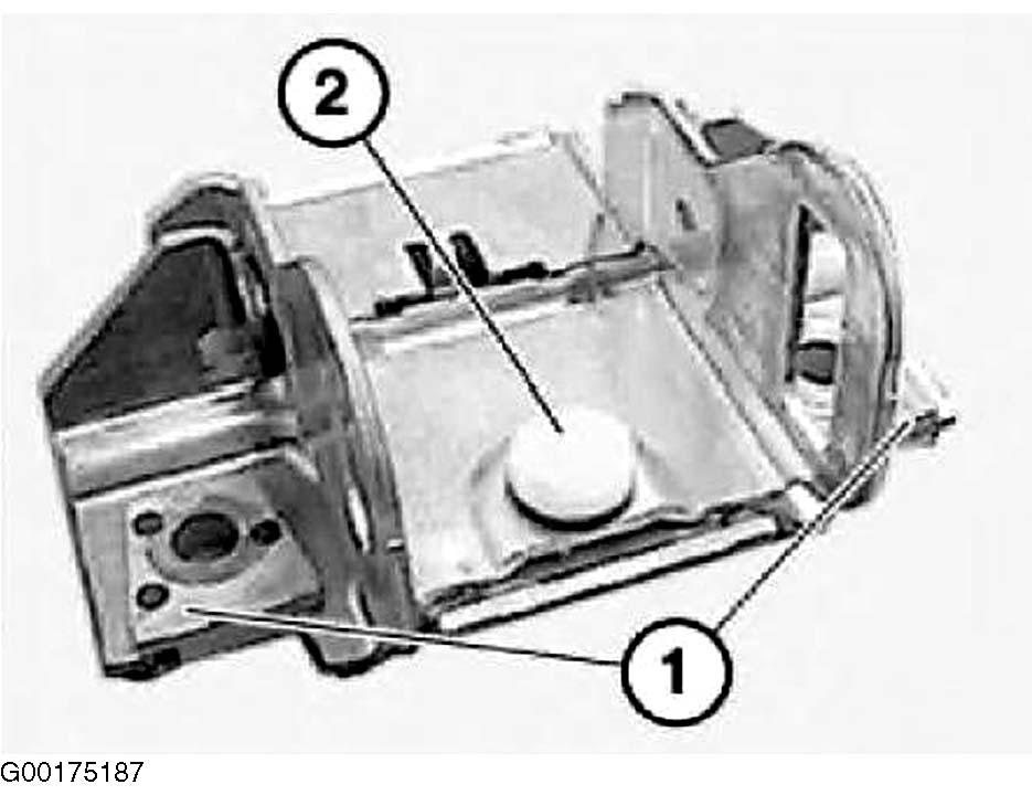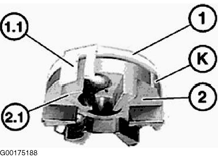 5. Locking element (1) must engage in steering angle sensor. Both locking hooks (2) must be snapped into place. See Figure.