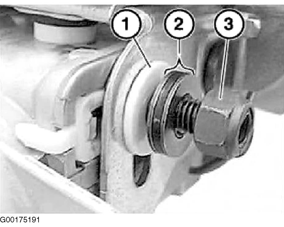 10. When installing sliding piece, screw (3) must fit in both guide sleeves. Install nut with Loctite. See Figure. Tighten to specification. See TORQUE SPECIFICATIONS .
