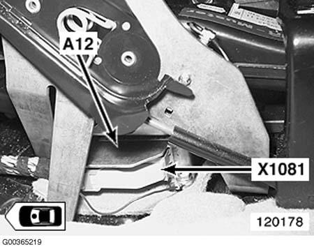 | Supplemental Restraint System Control Module (A12) | Below center console. See Figure. |