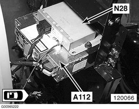| Navigation Control Module (A112) | Left rear passenger compartment. See Figure. |