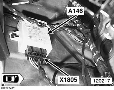 | Electronic Immobilizer Control Unit (EWS) (A146) | Left kick panel. See Figure. |