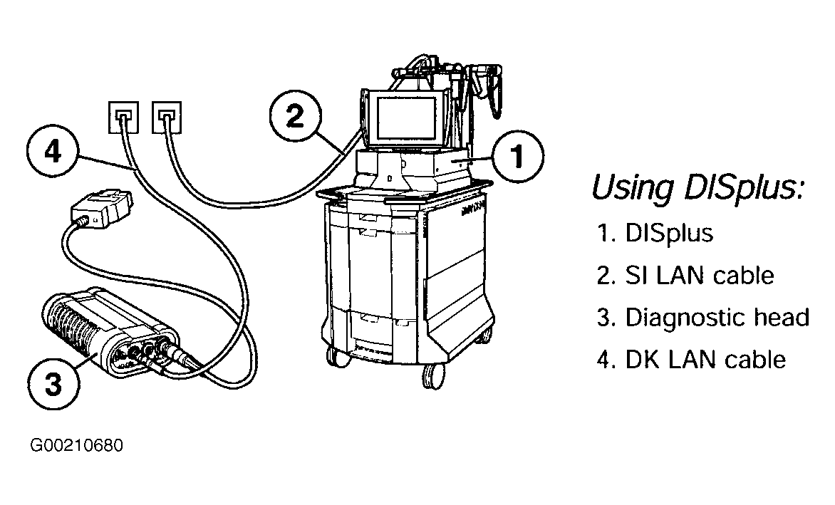 Diagnostic head must be hard wired to the network drop to ensure uninterrupted programming (do not use radio connections). If using DISplus, see Fig 1. If using GT-1, see Fig 2.