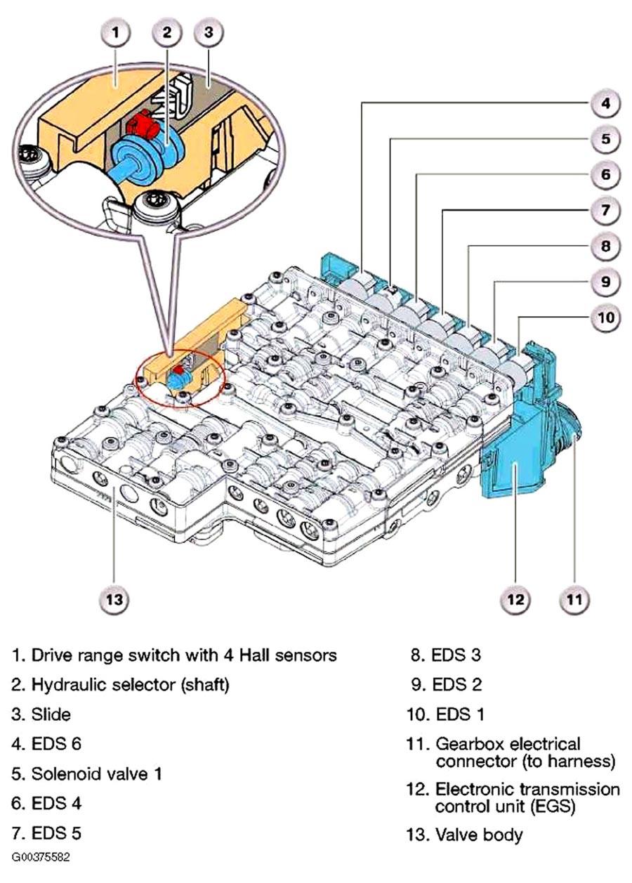 The mechatronic module is a combination of the hydraulic valve body and electronic control module which are installed in the oil sump. This offers the advantages of improved shift quality, increased driving comfort and increased reliability due to the reduced number of electrical connections and interfaces.