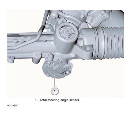 The total (summation) steering-angle sensor is only fitted in the vehicle if the active front steering system is fitted. The total steering-angle sensor records the rotation angle of the steering pinion and thus the wheel deflection (or actual steering angle) of the vehicle. The total steering-angle sensor is flange-mounted at the bottom of the steering gear. See Fig 1.