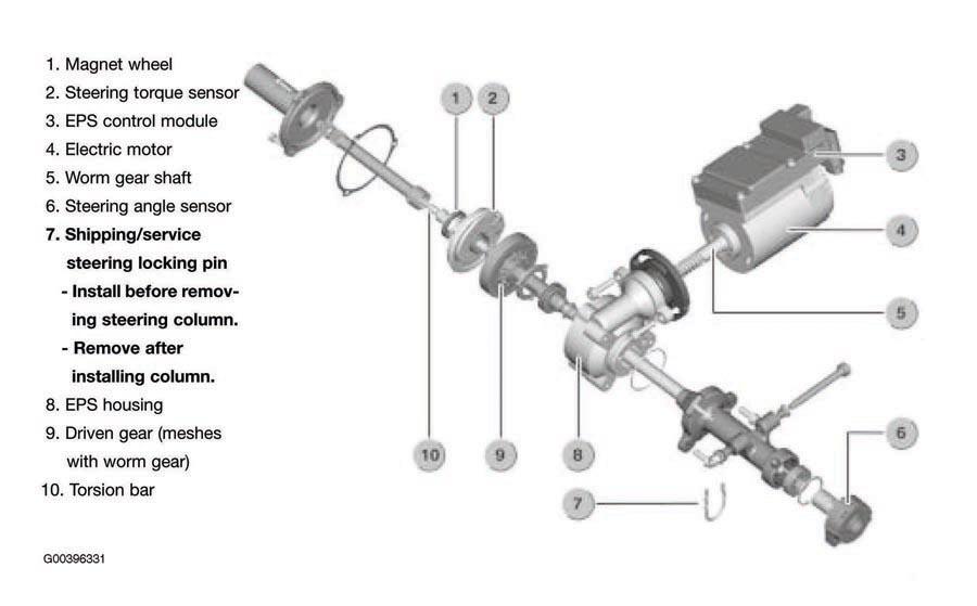 The servo unit provides active steering-effort assistance as required by steering force and vehicle conditions. The servo unit is located on the upper steering column and is protected in the passenger compartment, it consists of: