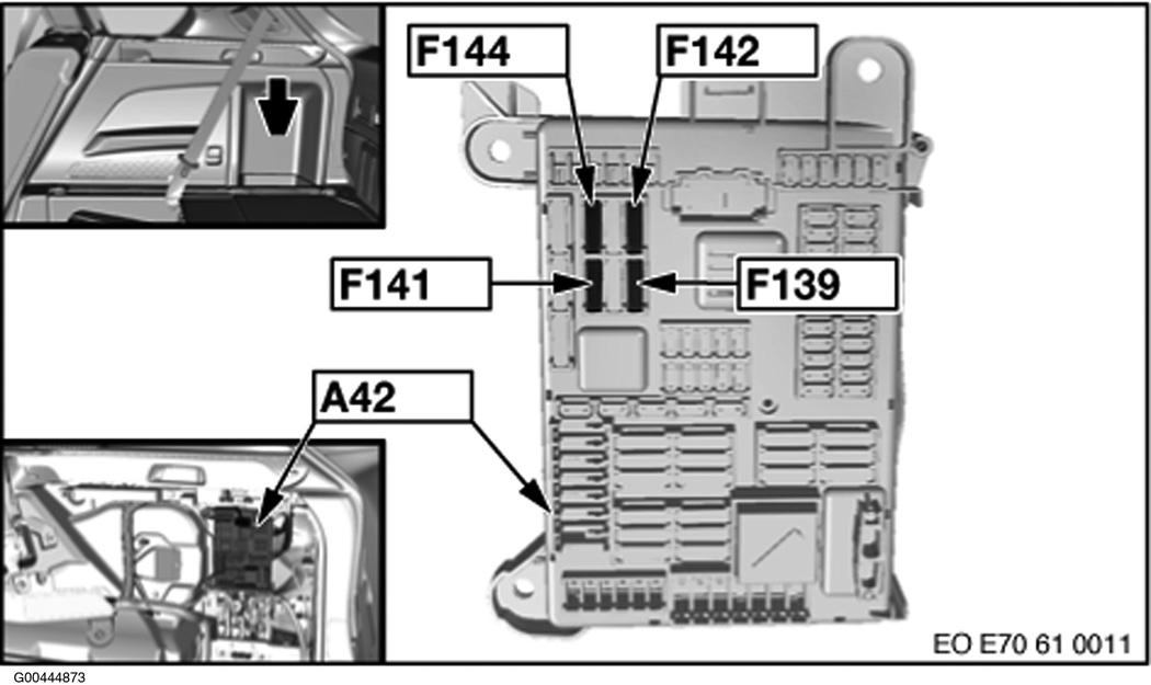 | Rear Power Distribution Box (A42) | Right side of rear compartment. See Figure. |