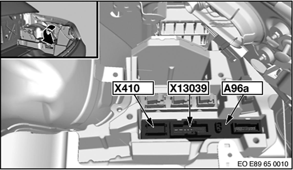 | Convertible Top Module (A96a) | Right rear of luggage compartment. See Figure. |