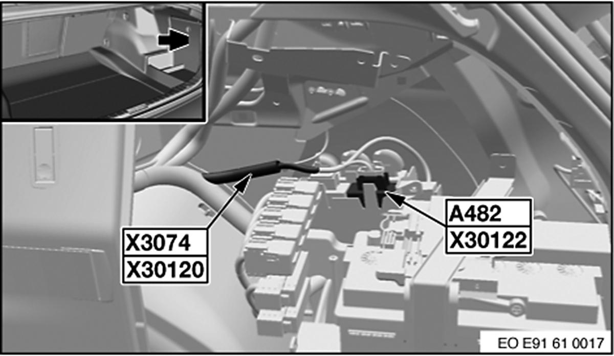 | Tire Pressure Control (RDC) (A85a) | Right rear luggage compartment. See Figure. |