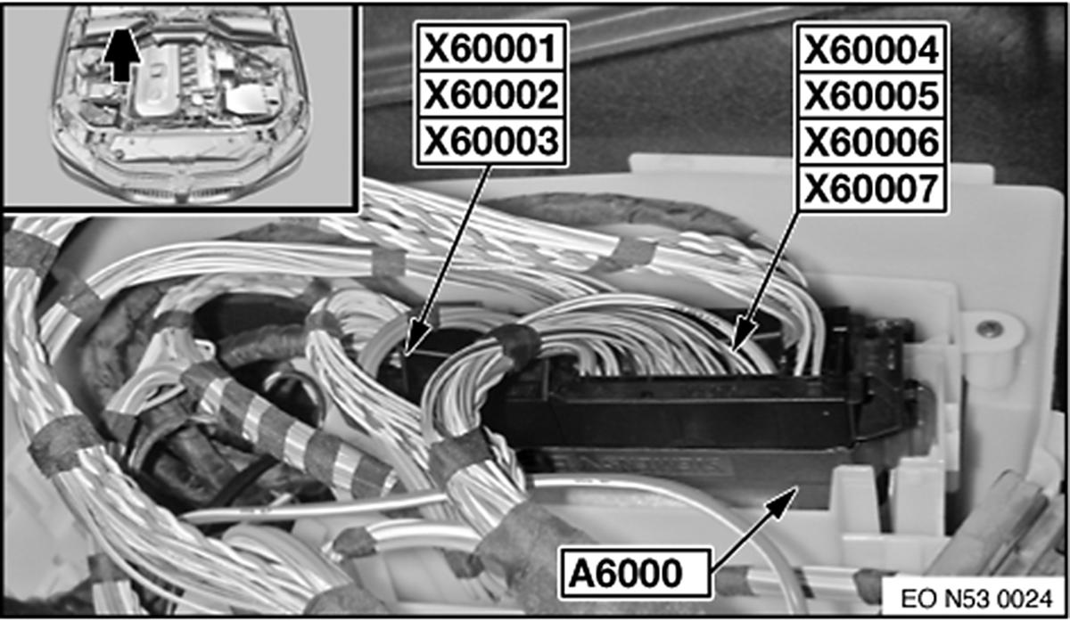 | DME Control Module (A6000) | Right rear of engine compartment. See Figure. |