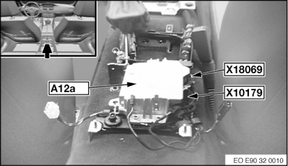 | Crash Safety Module (A12a) | Rear of center console. See Figure. |