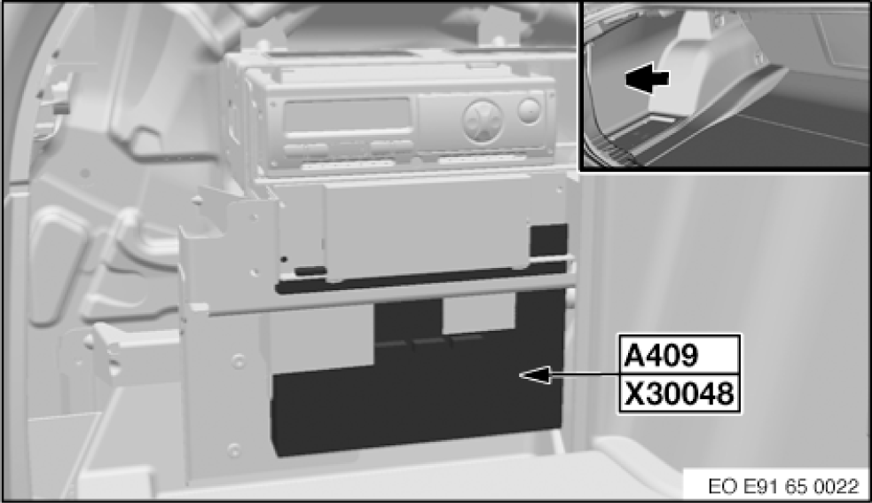 | Tire Pressure Control (RDC) (A85a) | Right side of rear compartment. See Figure. |