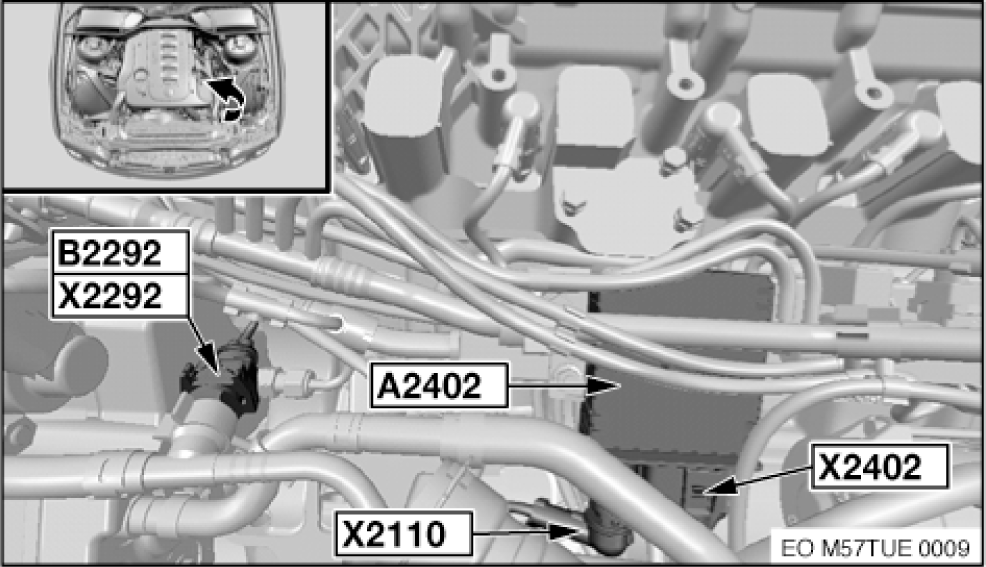 | Preheating Control Module (3.0L Diesel) (A2402) | Top front of engine. See Figure. |