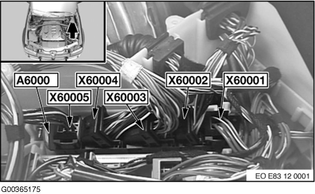 | Digital Motor Electronics (DME) Control Module (A6000) | Left rear of engine compartment. See Figure. |