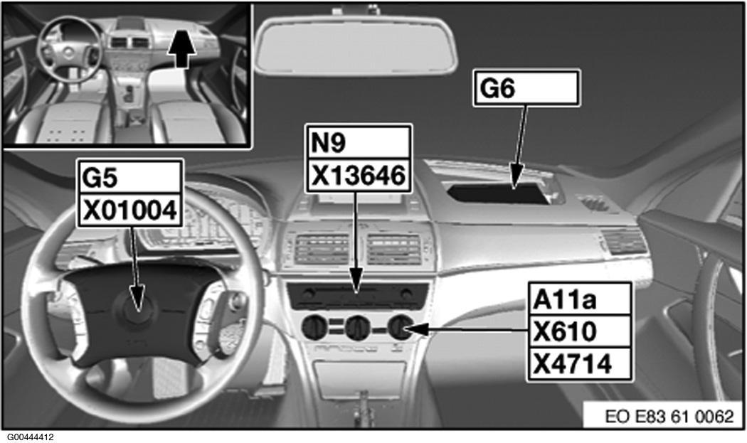 | Steering Wheel Heating Control Unit (I01110) | Center of steering wheel. See Figure. |
