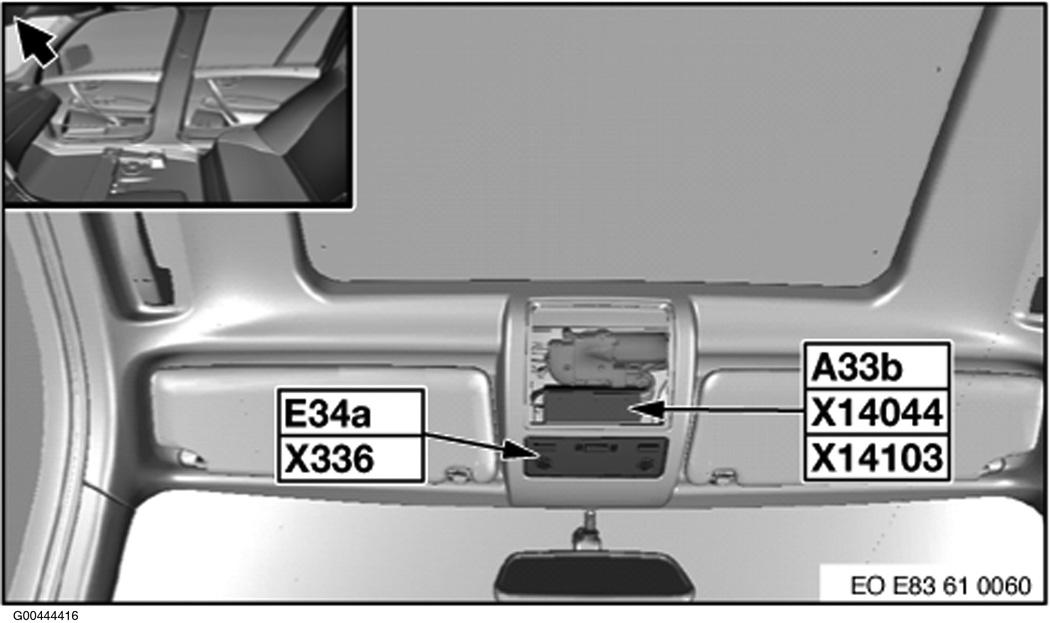 | Panorama Glass Sunroof Module (A33b) | In overhead console. See Figure. |