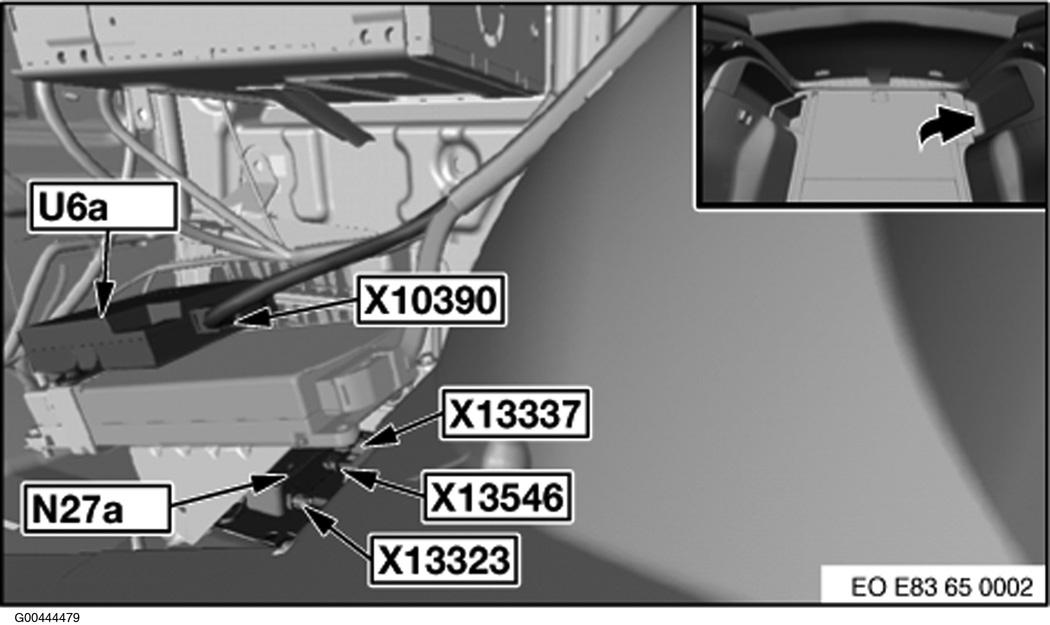 | Voice Control System (U6a) | Left side of rear compartment. See Figure. |