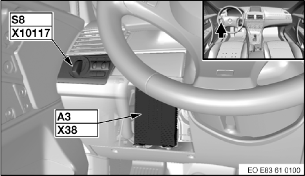 | Fuel-Pump Control (EKPS) (A13663) | Right "C" pillar. See Figure. |