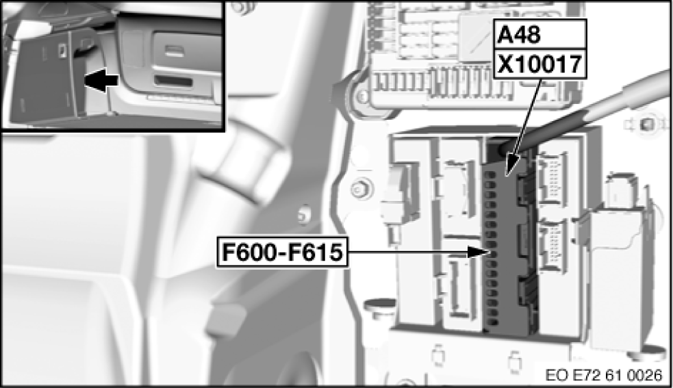 | Fuse Holder - Rear (A48) | Behind right rear quarterpanel. See Figure. |