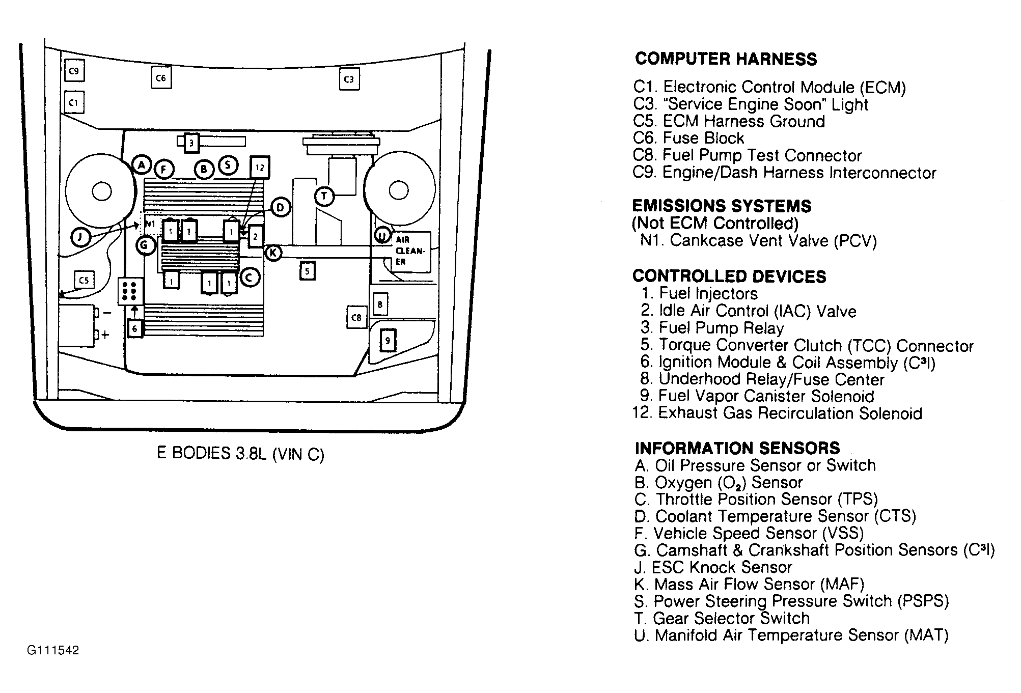 Fig 1: Port Fuel Injection Component Locations for 3.8L 3800 ECM/BCM Engine (VIN C)