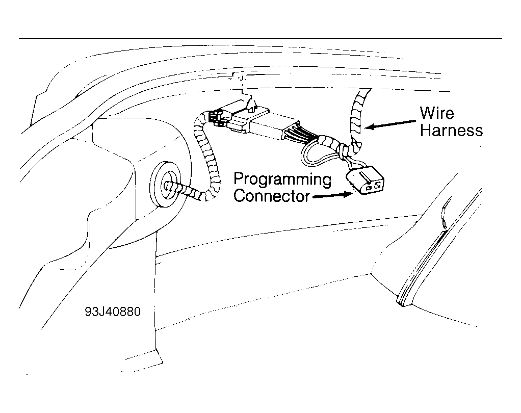 - Disconnect programming connector. System will not operate unless ground connection jumper wire is removed. Ensure transmitter is operating properly. Reposition trunk trim assembly.