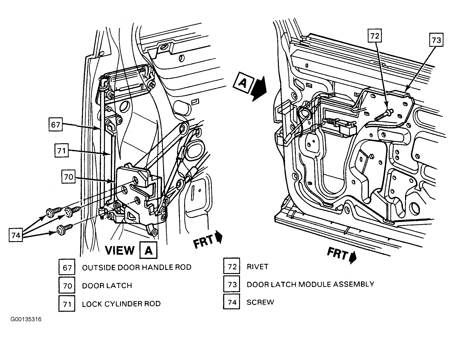 - Install lock cylinder rod (71) to door latch (70). See Fig 1