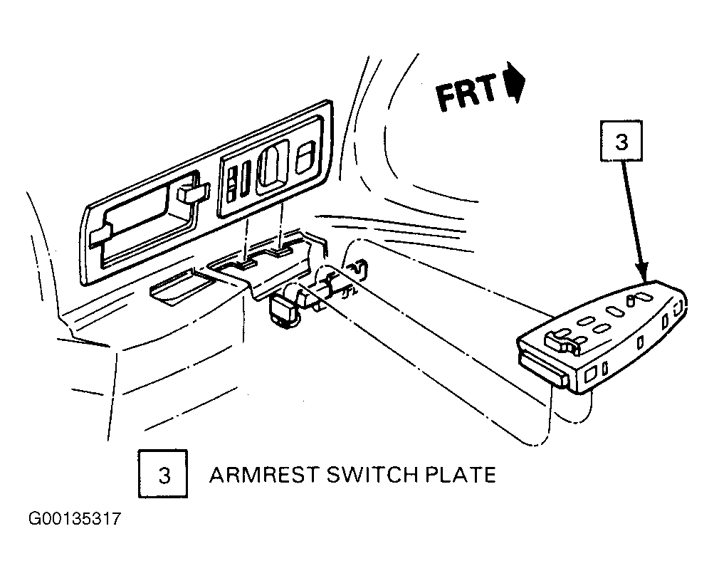 1. Install switch to armrest switch plate (3). See Fig 1 . Install screws (driver's side of vehicle) or snap to secure (passenger's side of vehicle).