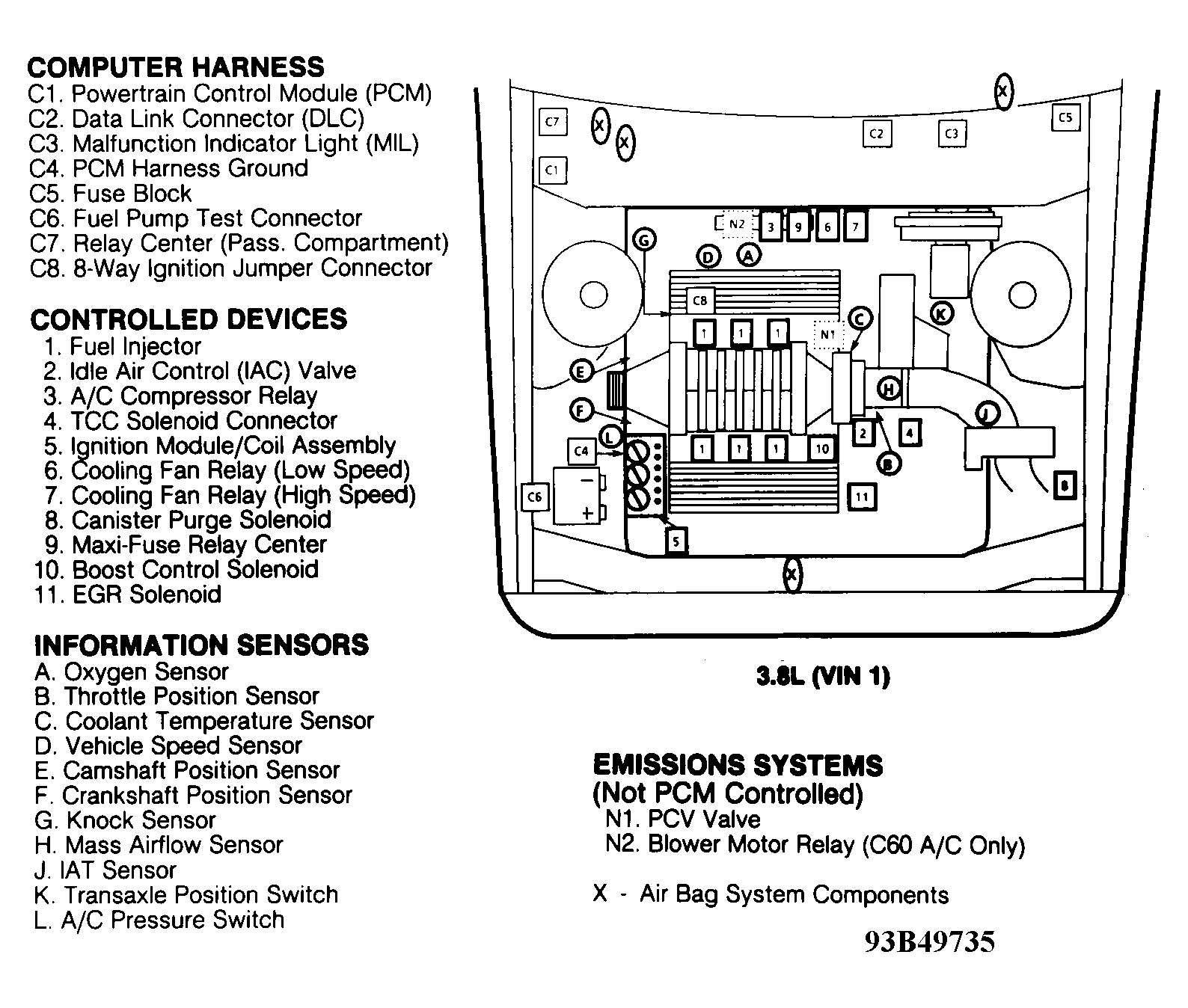 | 3.8L (VIN 1) | Behind right side of dash. See Figure. | |