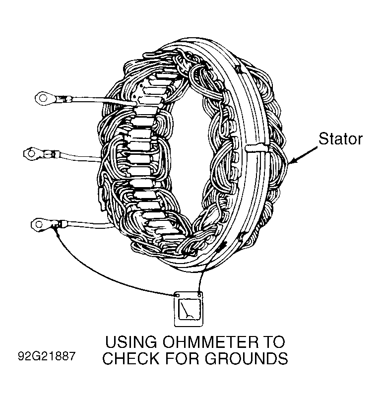 - Using ohmmeter, check for grounds between any stator lead and stator frame. See Fig 1. Ohmmeter should indicate infinite resistance. If reading is not infinity, replace stator. CS series generators are equipped with delta stator windings and cannot be checked for opens or shorts using ohmmeter. A noticeable discoloration anywhere on the stator usually indicates stator failure.