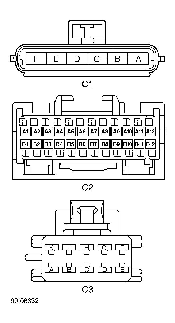 - Turn ignition off. Disconnect negative battery terminal. Reconnect SP205. Use DVOM to backprobe and measure resistance between SP205 connector terminal "A" (Purple wire) and following SP205 terminals: