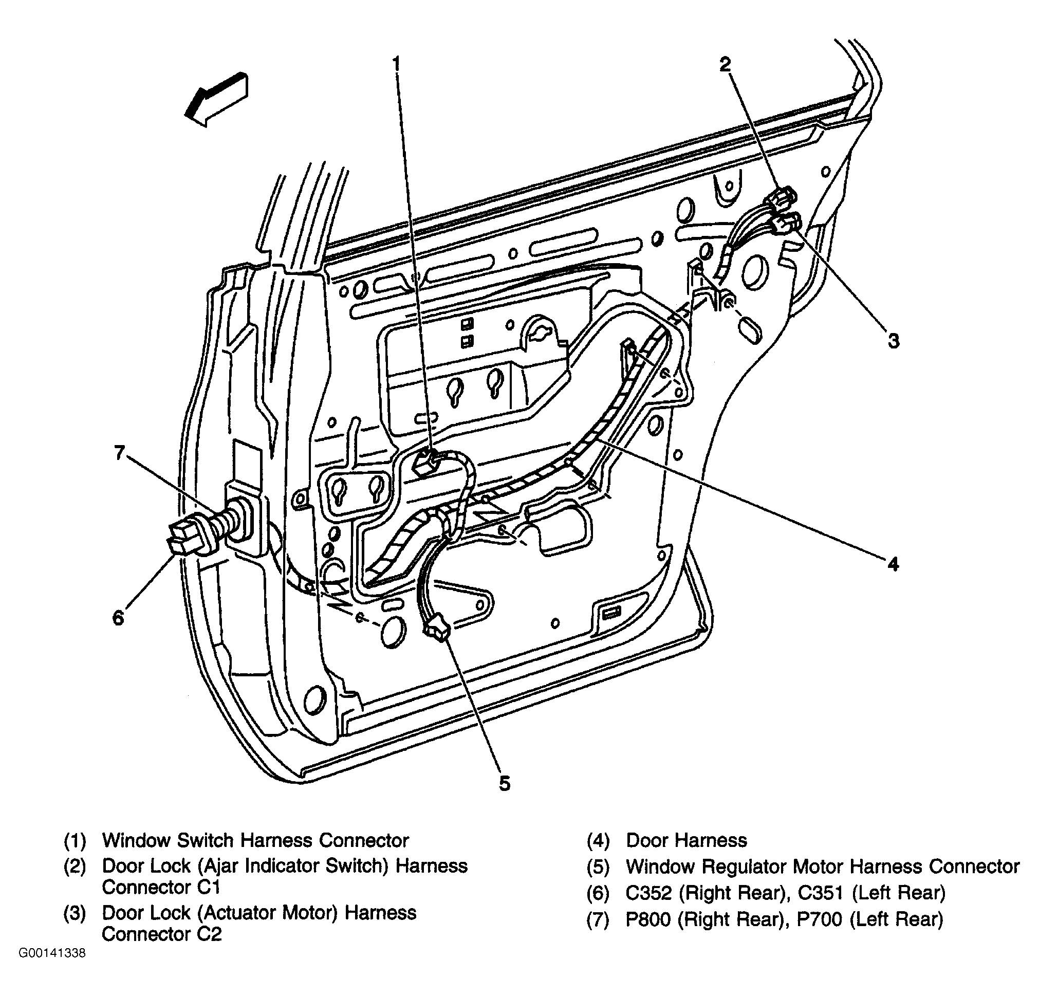 | C352 (10 cavities) | In Body Wiring Harness To Right Rear Door Wiring Harness, In B-Pillar. See Fig 3 |